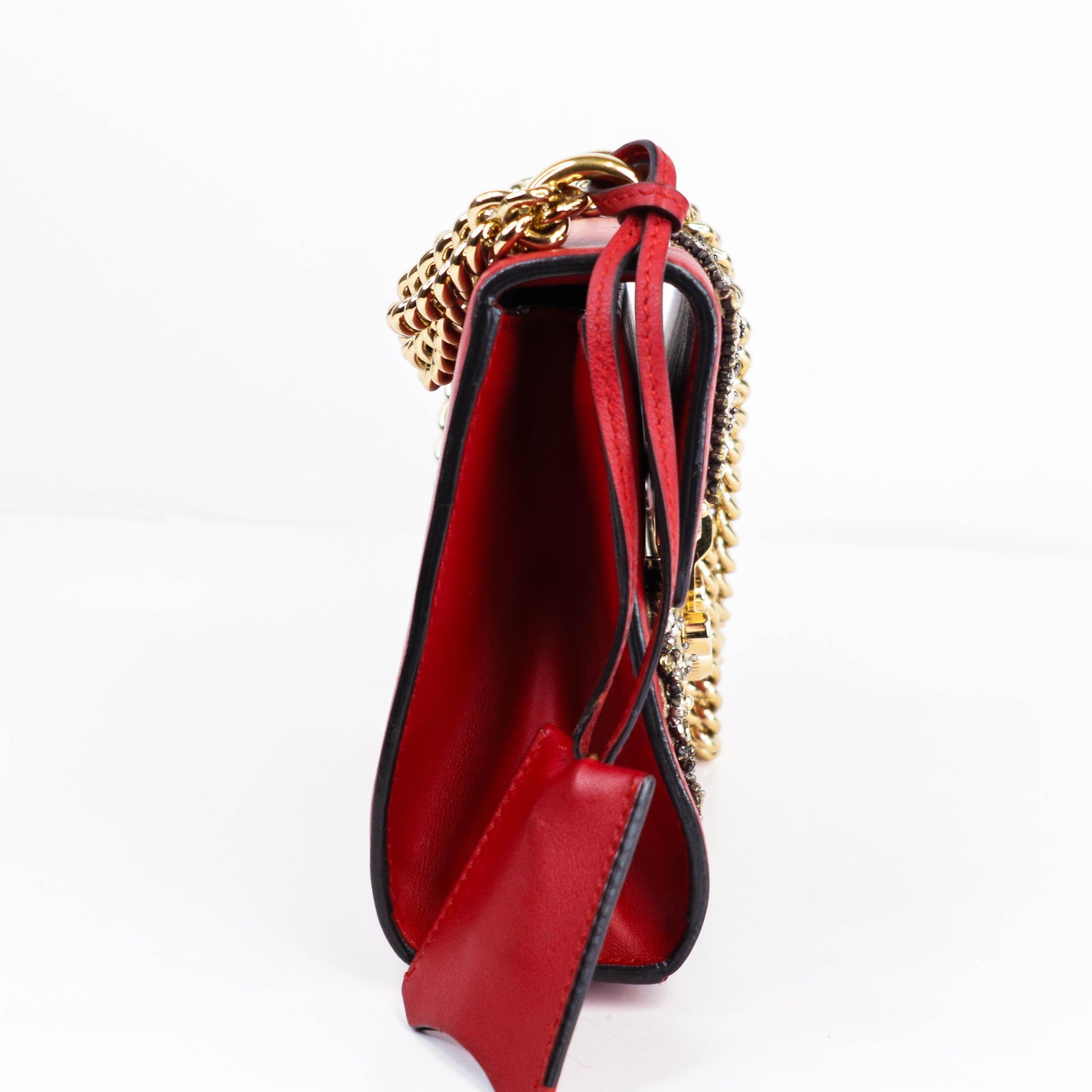 Gucci Limited Edition Red Leather Crystal Star Small Padlock Shoulder Bag